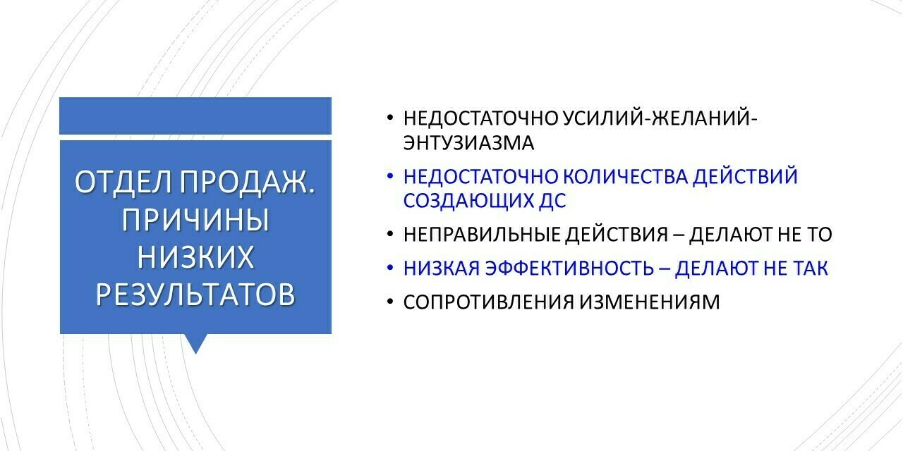Если курицу можно научить танцевать, то любого можно научить продавать. Продажи - это искусство коммуникации. Организация продаж - это проверенные методы, которые влияют на ваши обороты и доходы. И когда специалисты в отделах продаж поймут как оставлять клиентов в зоне положительного интереса, ваши продажи полетят вверх как ракета. Это было уже много раз, поэтому нам доверяют… Примеров такое количество, что и не сосчитать…более 20-ти лет мы создаем стратегии роста и развития персонала: колл-центры, отделы телемаркетинга банков, продуктовый ритейл, строительные материалы, СТО и авто запчасти, продукты питания, напитки, теплицы, мебель и даже услуги по стрижке собак и кошек…Там, где внедряется система развития, там мы получаем результаты - рост продаж и оборотов.